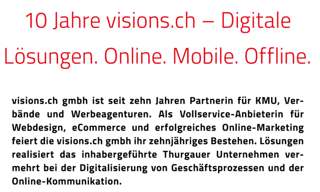 In der Juli-Ausgabe des "TGVaktuell", dem Magazin des Thurgauer Gewerbeverbandes, finden Sie einen Artikel zu unserem zehnjährigen Jubiläum.