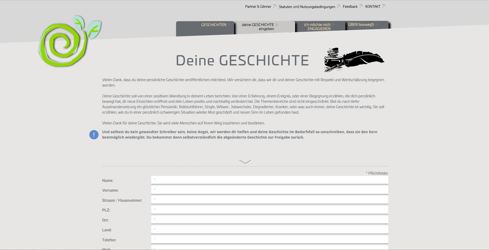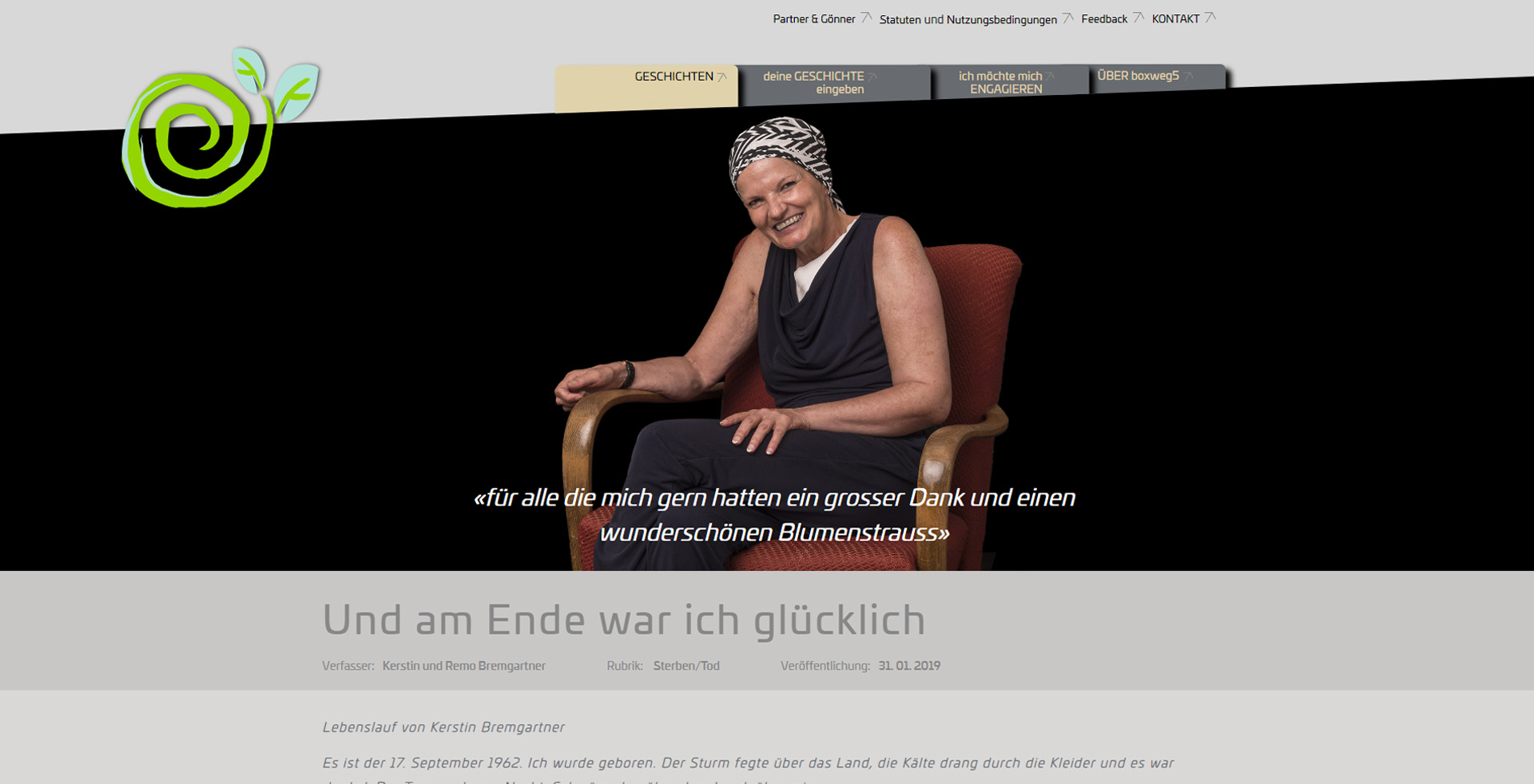 visions.ch zeichnet verantwortlich für die CMS-Webumsetzung der Geschichten Plattform Boxweg5. Der Verein Boxweg 5 möchte eine Plattform bieten, um Geschichten zu erzählen von Menschen die gestärkt aus schwierigen Lebenssituationen hervorgegangen sind.