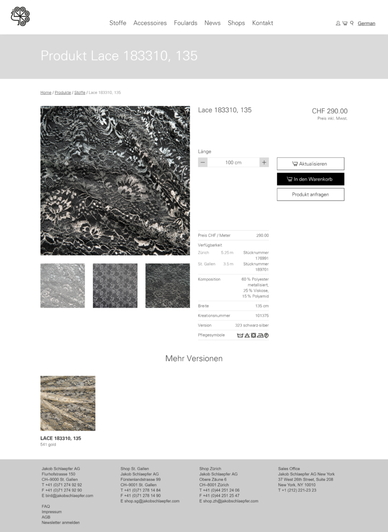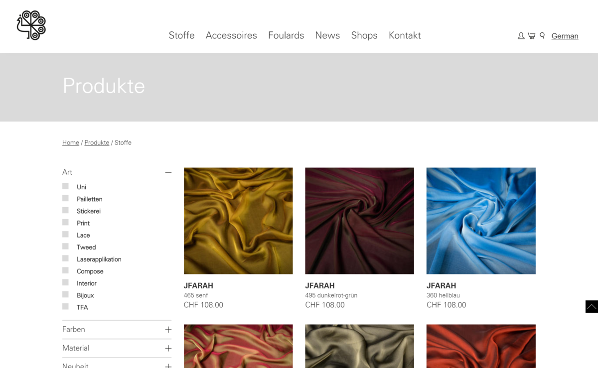Zeitgemäss können nun die Stoffe der Jakob Schläpfer AG online bestellt werden. Den stimmigen Onlineshop hat die visions.ch gmbh konzipiert, gestaltet und technisch umgesetzt.