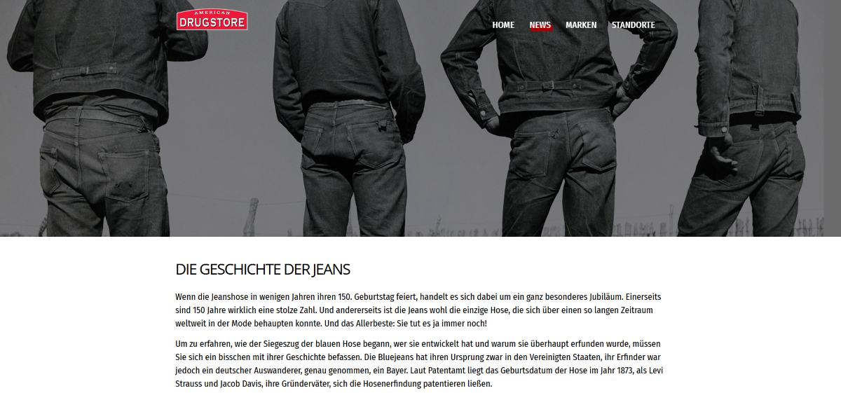 Wir durften den neuen Internetauftritt für American Drugstore gestalten. Darin werden alle Standorte mit dem jeweiligen Team und teils mit einem virtuellen Ladenrundgang vorgestellt. Sämtliche angebotenen Marken werden kurz vorgestellt und bei den bekannteren Marken einen Einblick in die Geschichte gewährt. Zudem wurden alle Seiten für Smartphones, Tablets und für die Suchmaschinen optimiert.