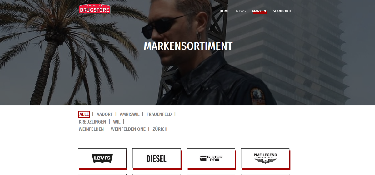 American Drugstore ist der führende Anbieter von Jeans in der Ostschweiz. Über 30 Marken werden an den acht Standorten angeboten.